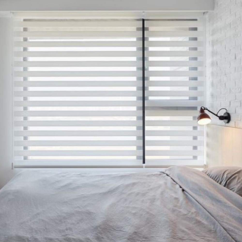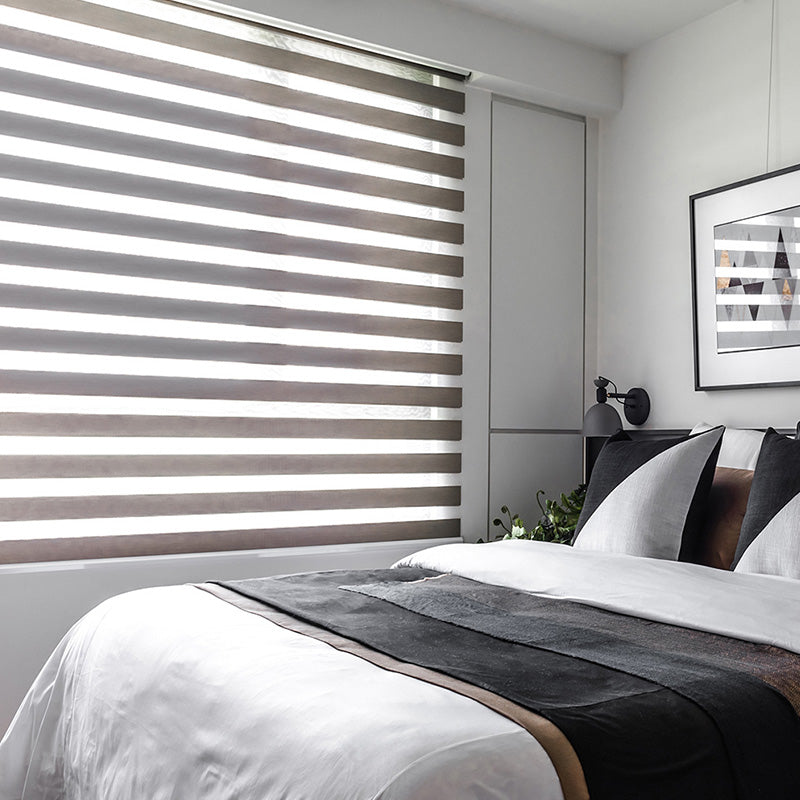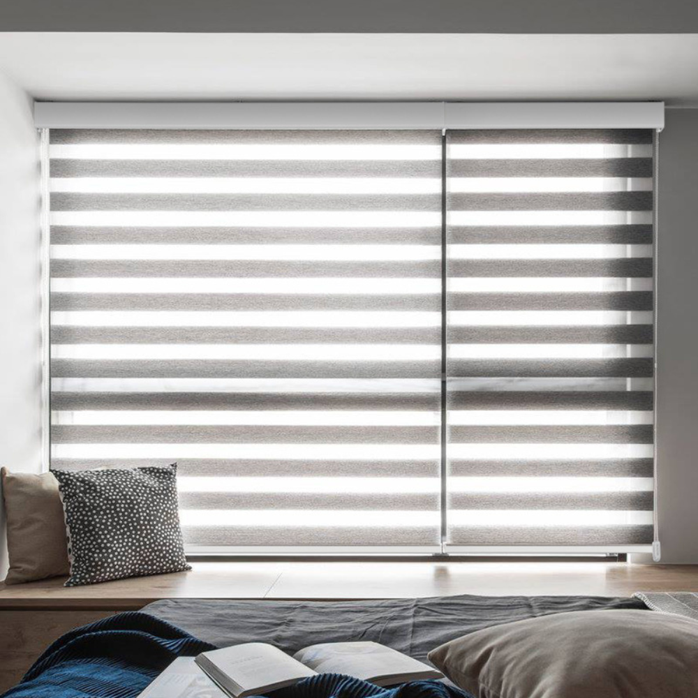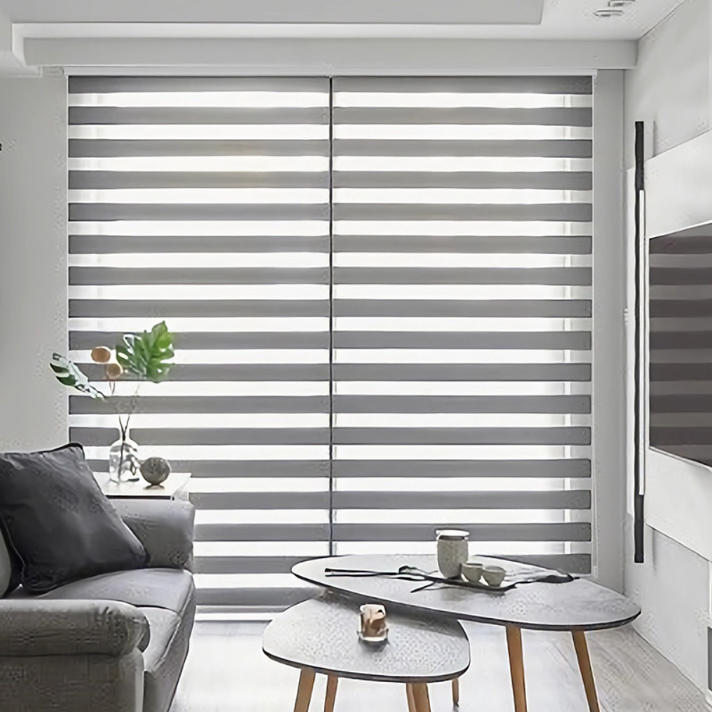 Zebra blinds with corded control offer a versatile window covering solution, suitable for both inside and outside mounts.