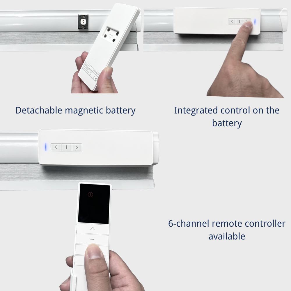Elevate your living space with our Premium Motorized Cellular Shades, designed for convenience, style, and functionality. Featuring dual control options—built-in controls on the battery and a 6-channel remote controller—these shades offer effortless operation. The removable Type-C rechargeable battery lasts up to 6 months on a single charge, while customizable sizes ensure a perfect fit for any window. Choose between blackout or light-filtering fabrics to suit your privacy and lighting needs. With a no-drill installation, setup is quick and renter-friendly. These shades seamlessly blend modern technology with sleek design for a practical and elegant window solution that enhances any space.