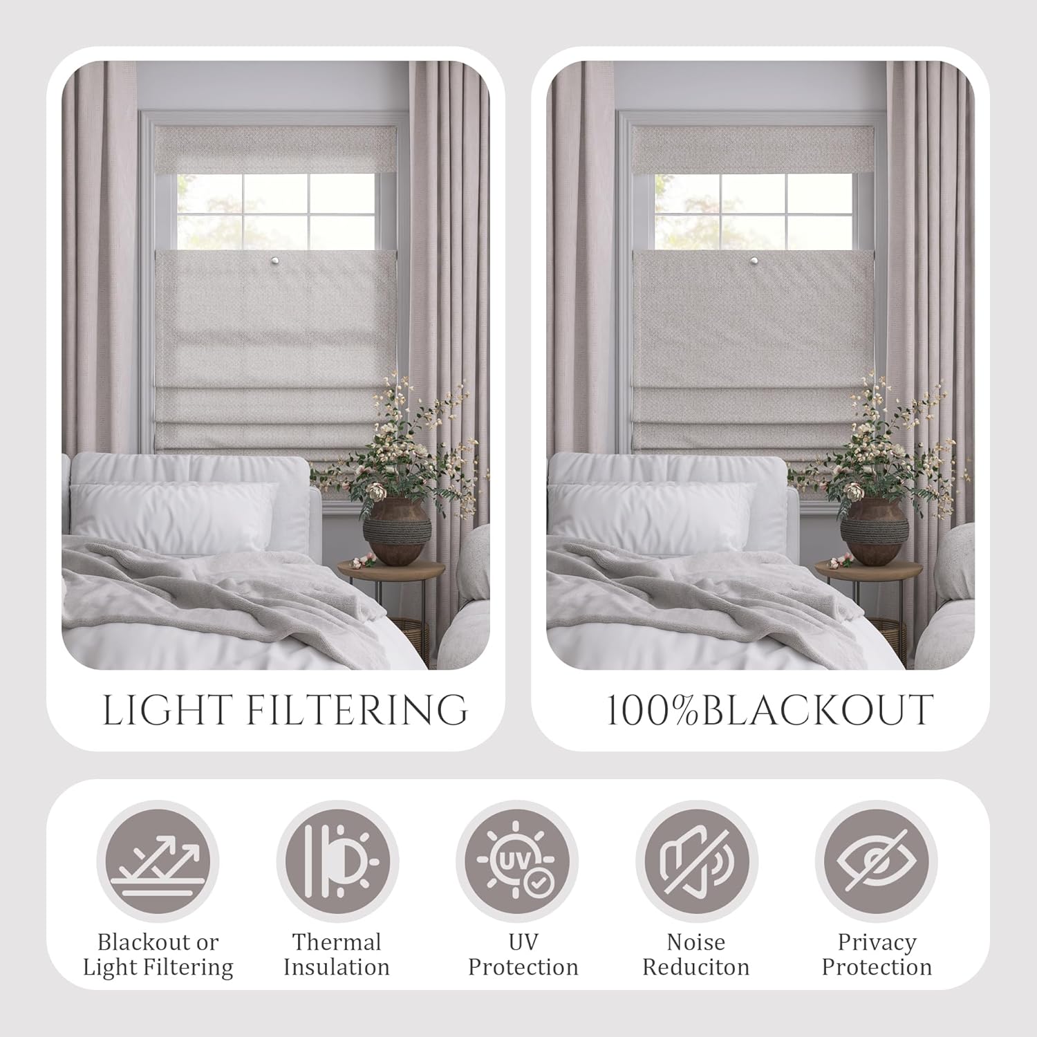 Properties UV Protection/ Style Material Fabric Faux Lien Material Width 14- 59 inch (350mm-1500mm) Height 25 -...