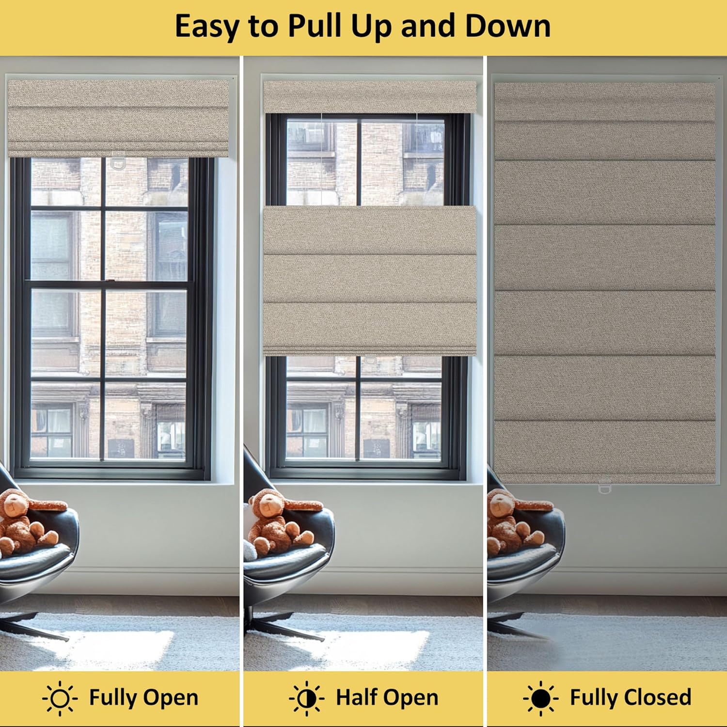 NO Drill Cordless Top Down Bottom Up Roman Shades