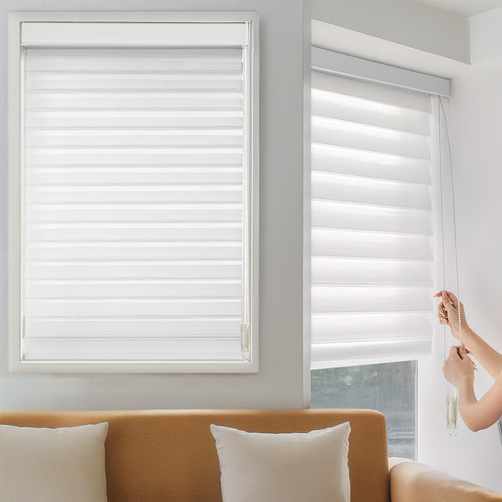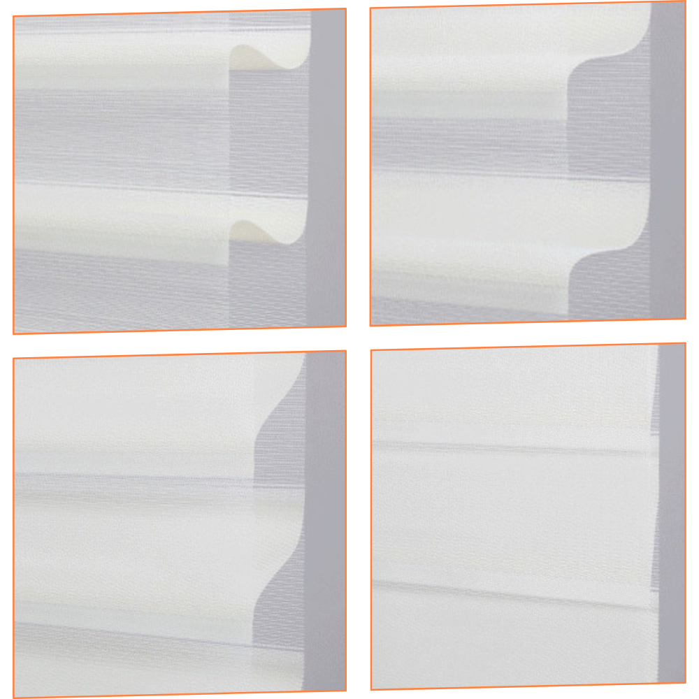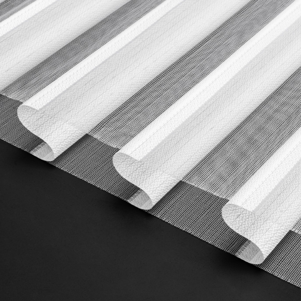 Sheer shades, also known as Shangri-La shades, offer a unique blend of elegance and functionality. Unlike zebra shades, sheer shades feature three layers: two layers of delicate sheer fabric and one layer of solid fabric in between.